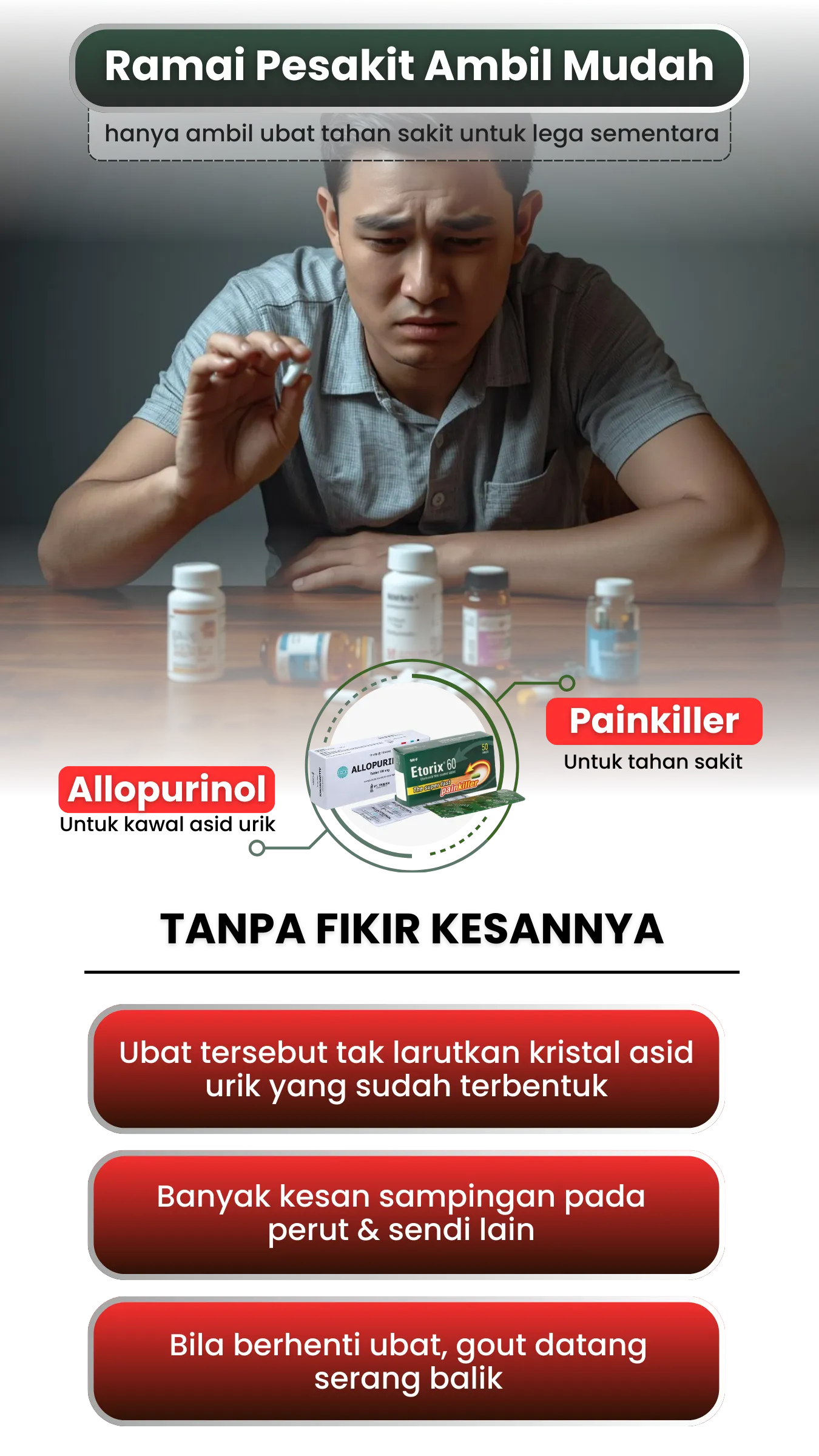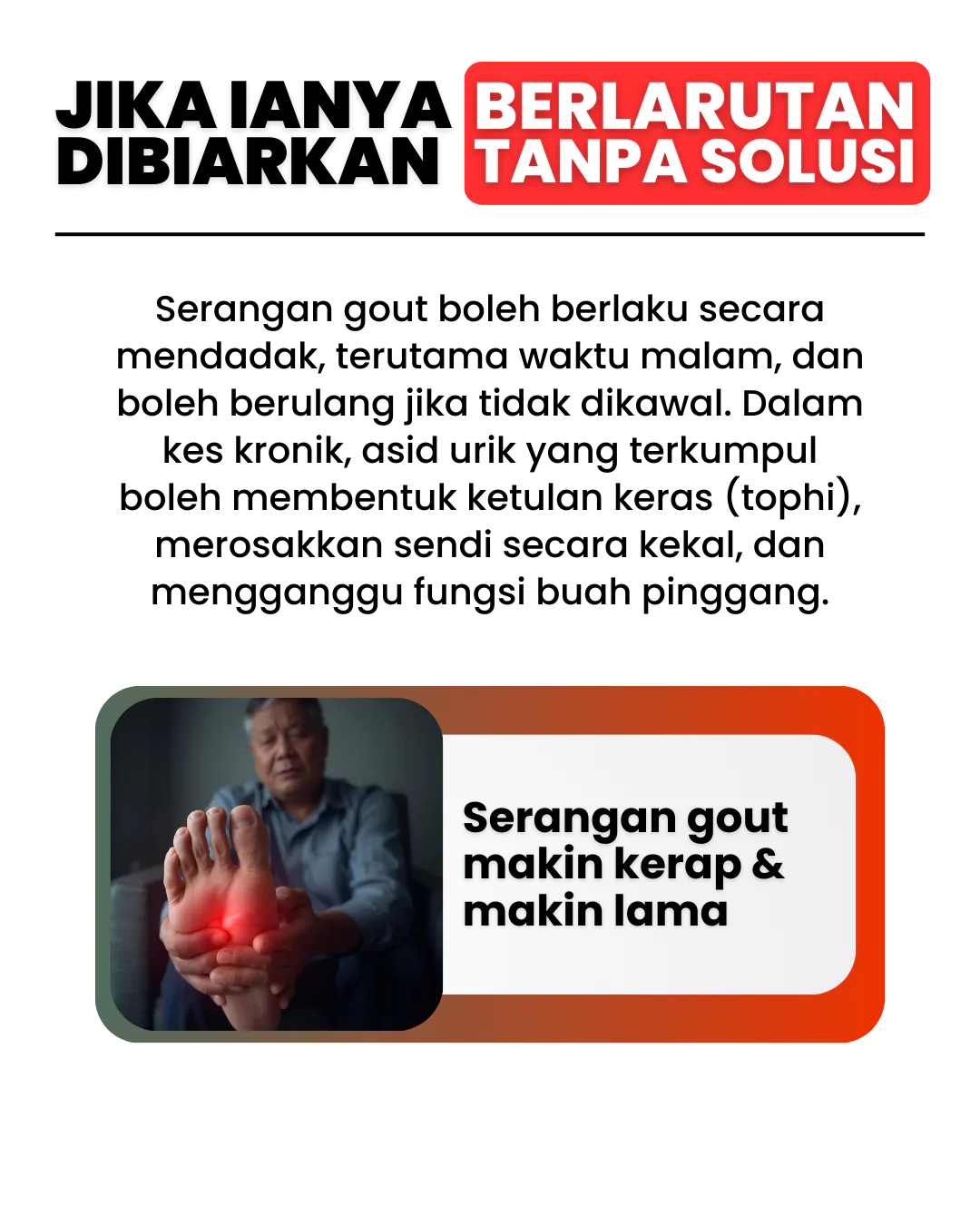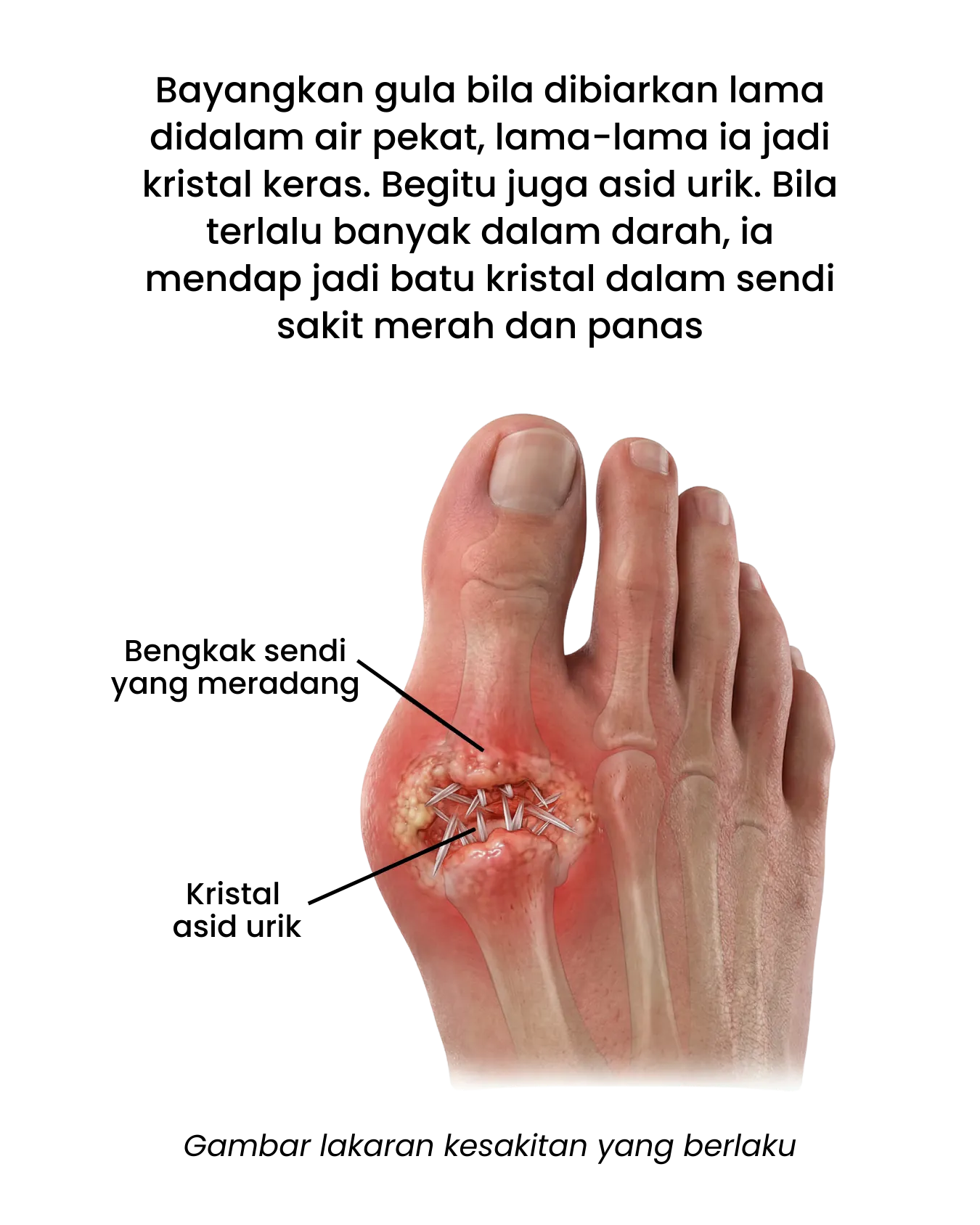 Bukan anda sorang, ramai orang alami simptom seperti ini bila kristal asid urik mula berkumpul.